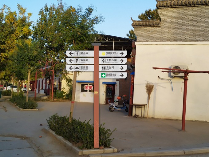 近年来随着国家对乡村旅游政策的大力扶持,各个地区乡村景区建设开始兴起,乡村标识系统的个性化要从景区村落当地地域文化中汲取精华,体现地方特色,从而使标识系统的某些特征具有不可替代性。比如乡村标识标牌的造型设计可以取材于当地特有的装饰符号、生活生产用具、建筑形式等;在材料上选取具有地方特征的原材料,更好地融于环境,体现乡土气息;标识内容也要尽量反映当地的历史、文化等。下面就带来一套滑县王村乡村旅游导视设计方案,一起来欣赏下!
