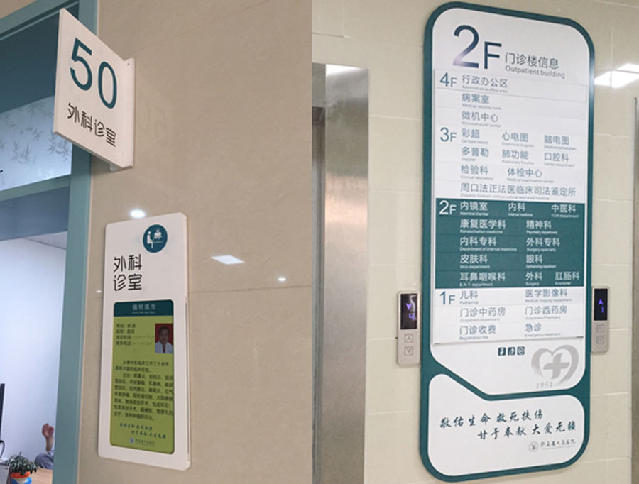 对于医院来说,首先设计人员要根据医院的整体环境进行设计,医院标识牌的颜色都是选择暖色调的颜色,避免出现大红大紫,影响病人的情绪,启用暖色调对病人的情绪起到安抚的作用。